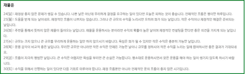 2. 재물운: 소비 습관 등의 결과를 보고 자신의 소비 패턴을 점검해 보시면 불필요한 지출을 줄이고 예전 같으면 바로 구매했을 물건도 한 번 더 고민하게 되고 저축을 한다던지 경제적으로 성장해 보는 계기가 될 수 있을 것입니다.