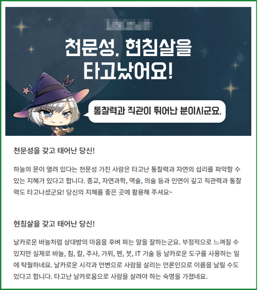 - 신살과 길성 등, 세부적인 내용을 시각적으로 확인할 수 있어요. 👀